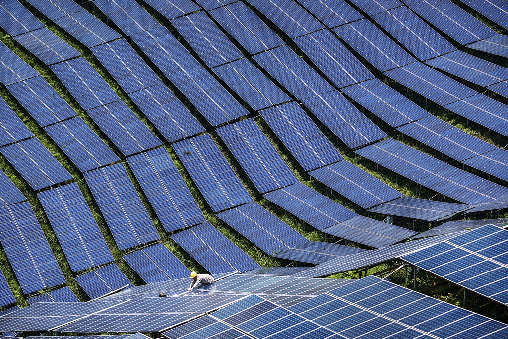 太阳能:光伏板组件是一种暴露在阳光下便会产生直流电的发电装置,由几乎全部以半导体物料(例如硅)制成的薄身固体光伏电池组成。由于没有活动的部分,故可以长时间操作而不会导致任何损耗。简单的光伏电池可为手表及计算机提供能源,较复杂的光伏系统可为房屋照明,并为电网供电。 光伏板组件可以制成不同形状,而组件又可连接,以产生更多电力。天台及建筑物表面均会使用光伏板组件,甚至被用作窗户、天窗或遮蔽装置的一部分,这些光伏设施通常被称为附设于建筑物的光伏系统。